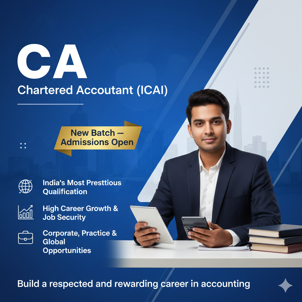 The Chartered Accountant (CA) qualification is India’s most prestigious professional course in accounting, auditing, taxation, and finance. It prepares professionals for careers in audit, corporate finance, taxation, and advisory roles.