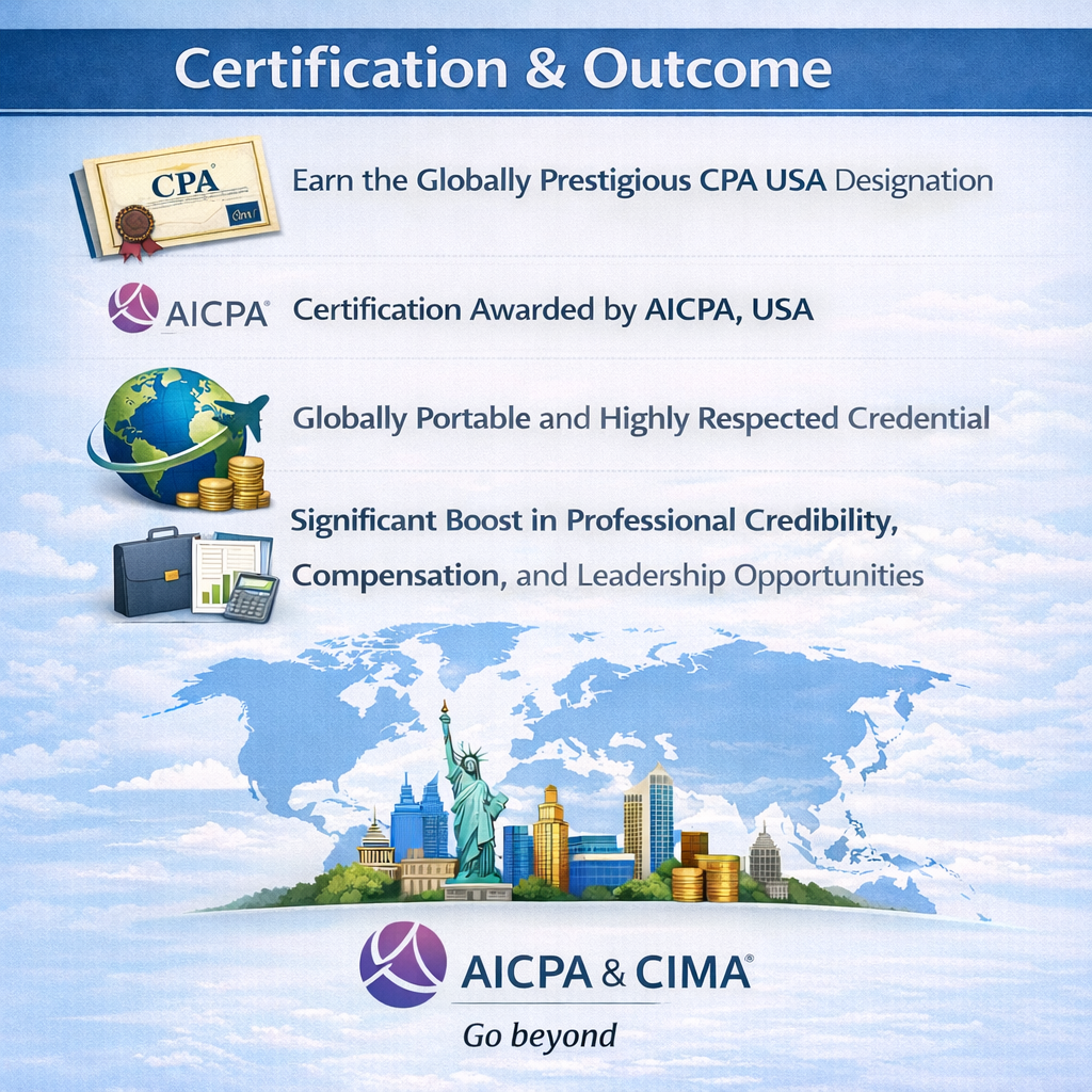 The CPA USA (Certified Public Accountant) is one of the most prestigious and globally recognized professional certifications in accounting, auditing, taxation, financial reporting, and regulatory compliance, awarded by the American Institute of Certified Public Accountants (AICPA), USA.