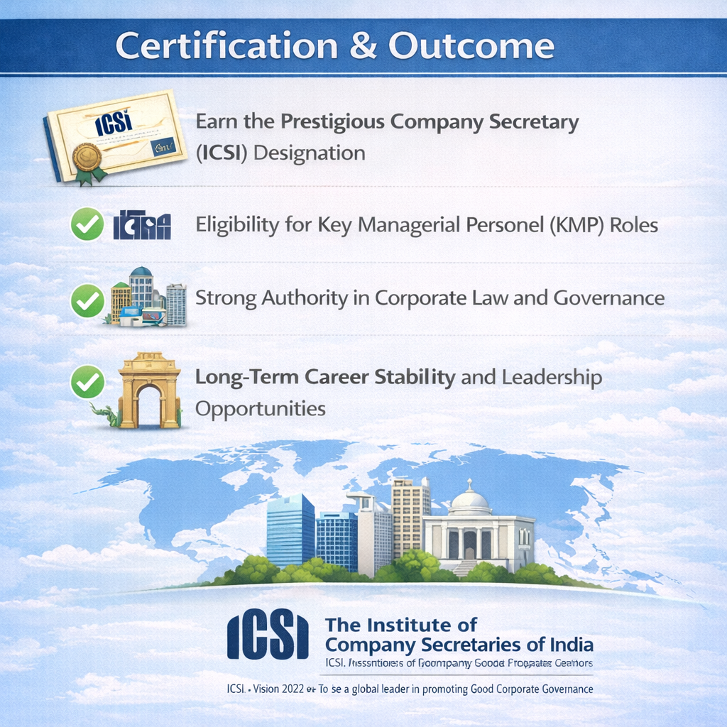 The Indian CS (Company Secretary) qualification, governed by the Institute of Company Secretaries of India (ICSI), is the leading professional course in corporate laws, governance, compliance, and board-level advisory.